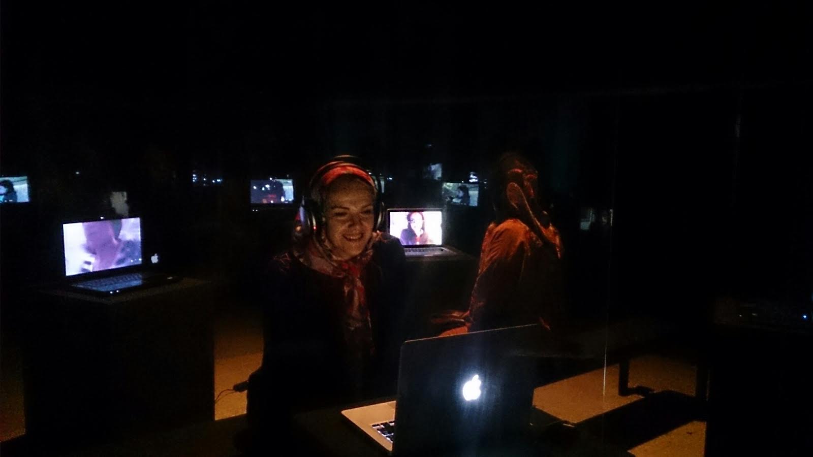 Monitoring [Tehran] is a multi channel interactive video installation of a durational performance for Skype. Some Tehran dwellers are online at their home, whether performing or simply doing their everyday life activities. This live installation is an attempt between the public and the private place within what we might call aesthetic surveillance. The presence of these Tehran dwellers is mediated through the lens of the laptops’ cameras at the gaze of their viewers.